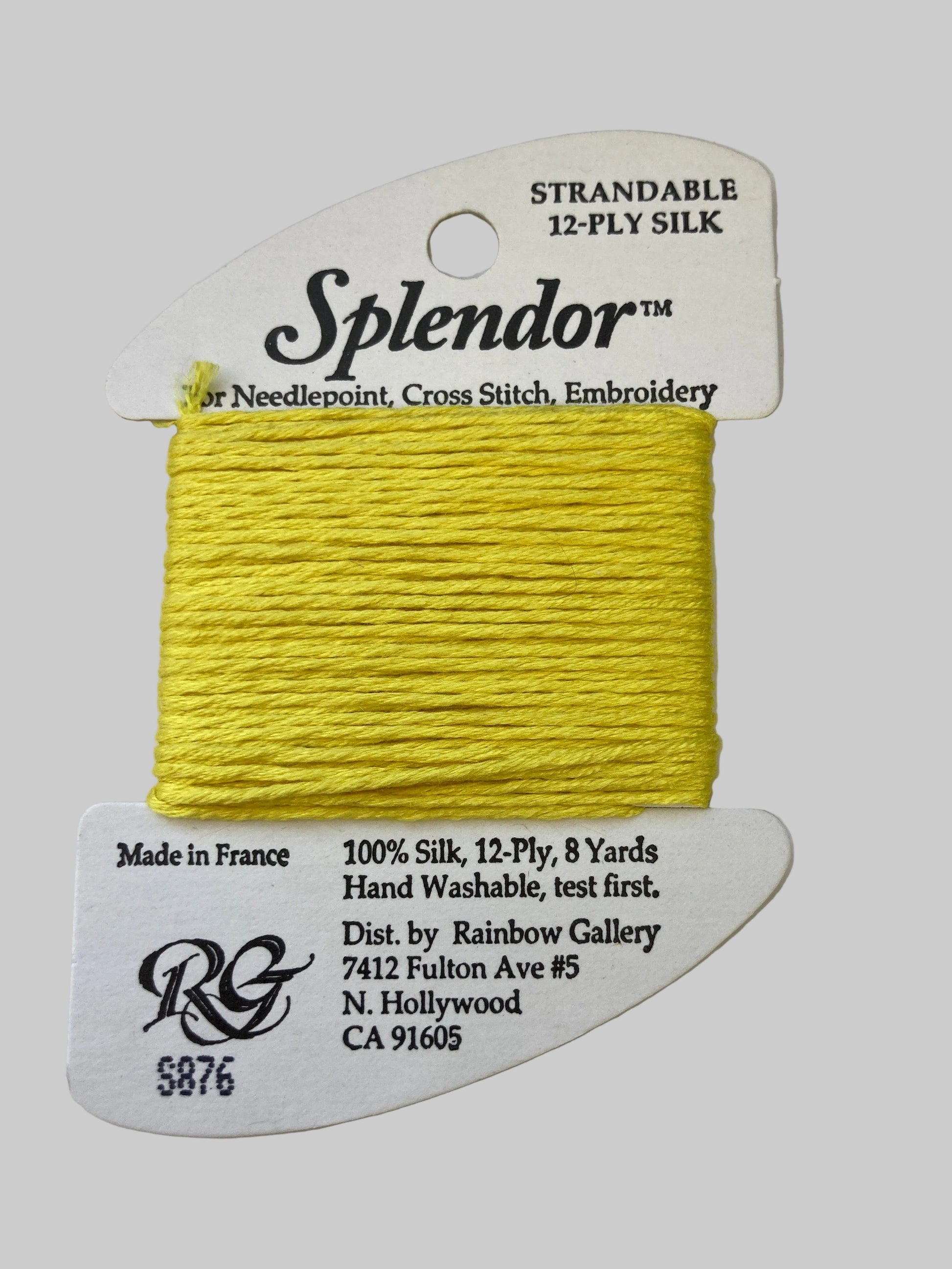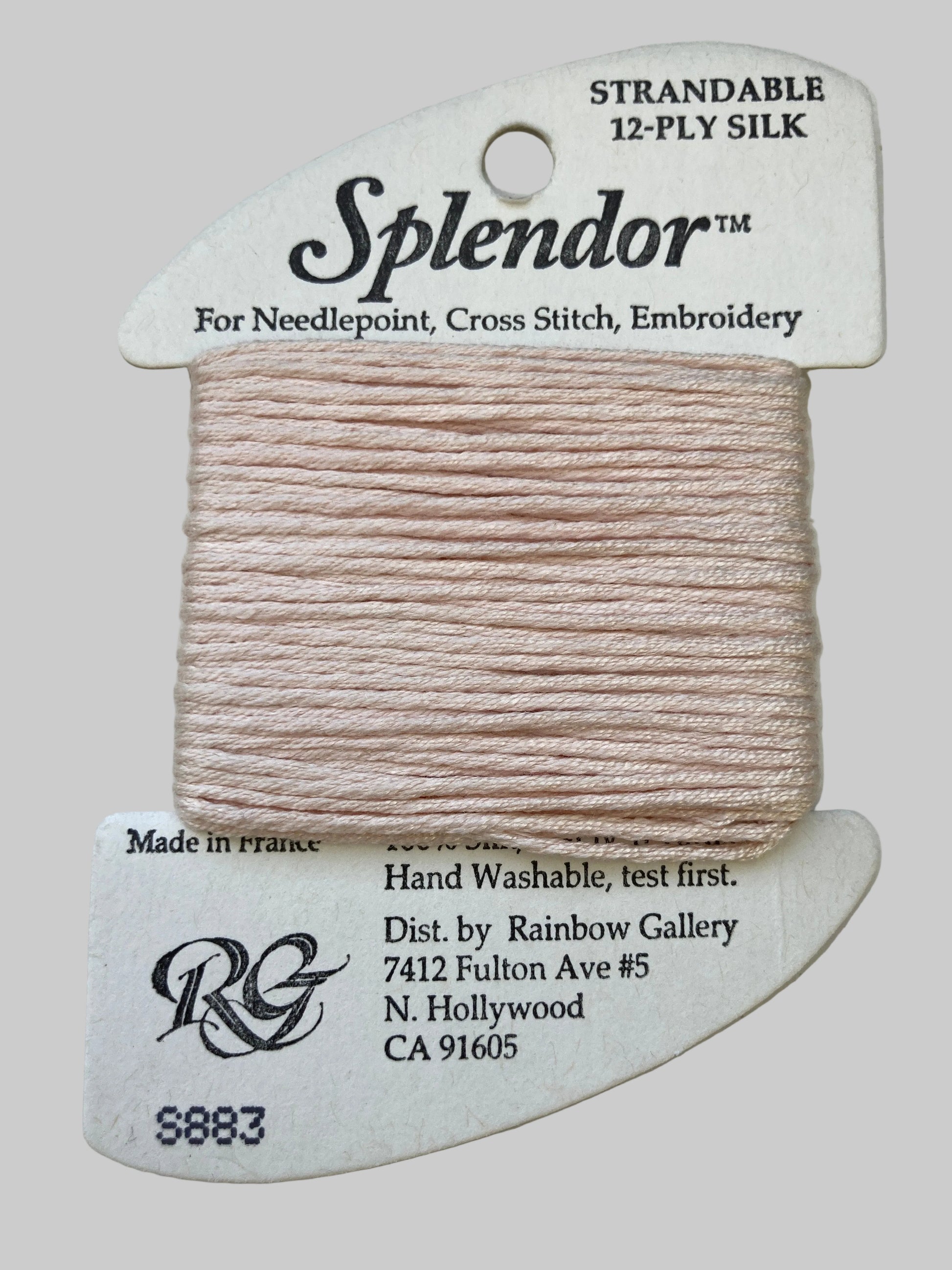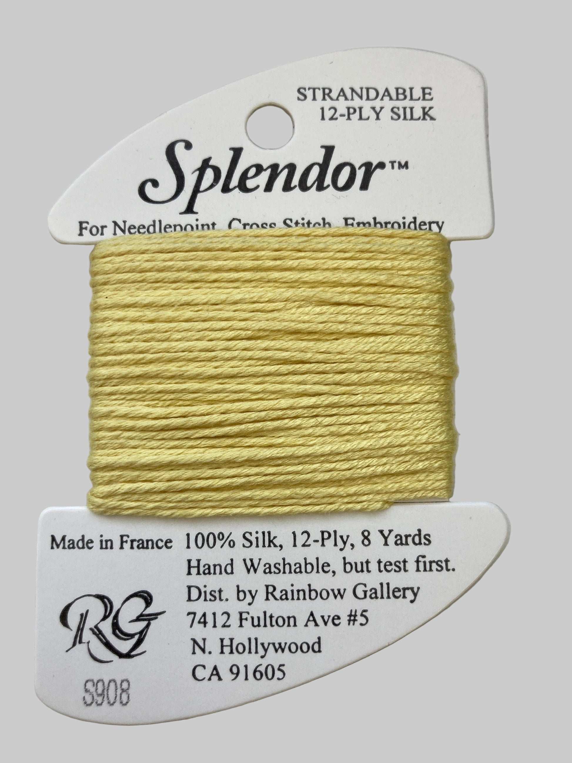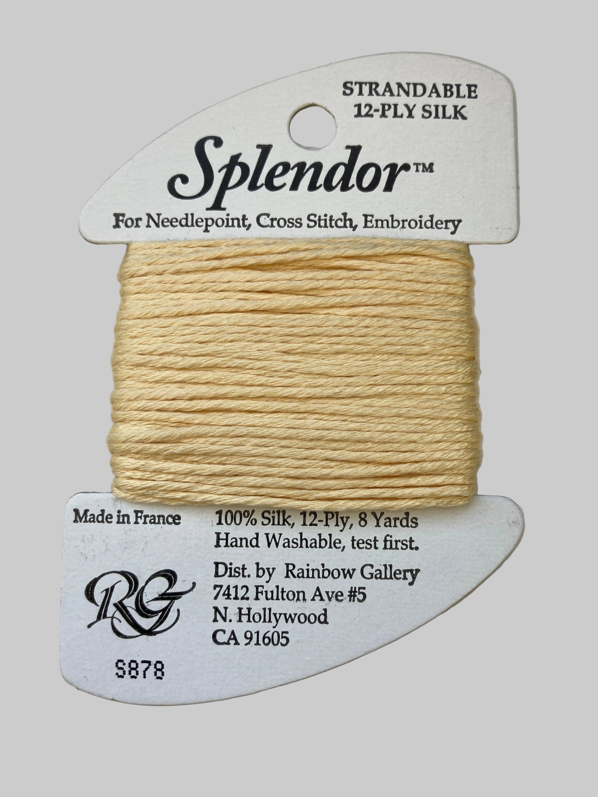 A 12-ply silk that is composed of three 4-ply bundles twisted together. The twist of each individual strand is tighter than most silks making it easier to use. Many of the usual problems experienced with silk will not occur with Splendor. Anyone that stitches with cotton floss will have no problem with it. Dyed to match many of the Splendor colors are Splendor Silk Ribbon, Grandeur, Elegance, and Subtlety.