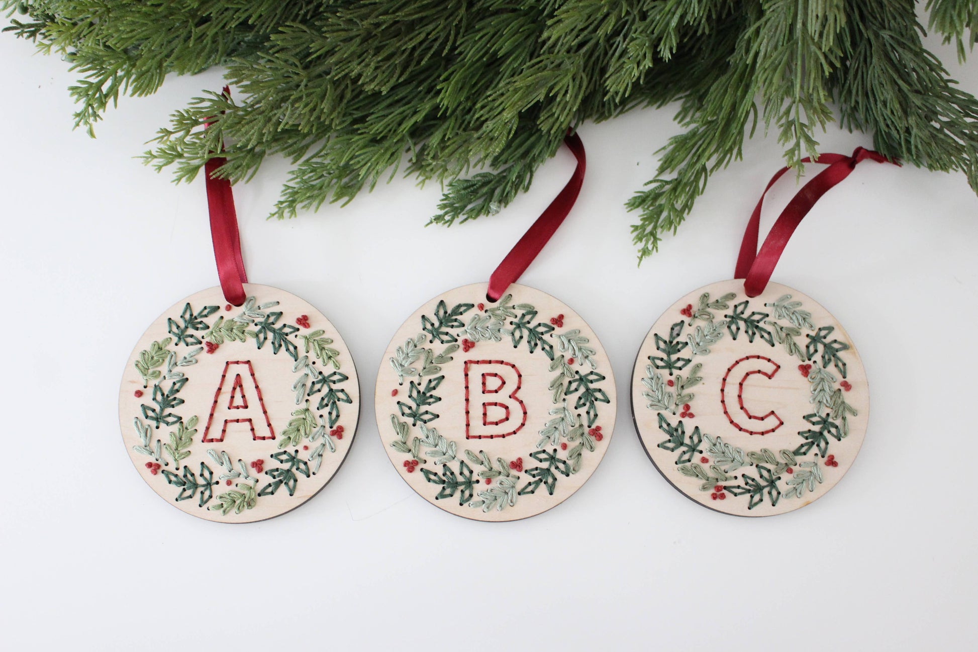 The HNB House - DIY Wood Embroidery Kit - Wreath Monogram Christmas Ornament: P